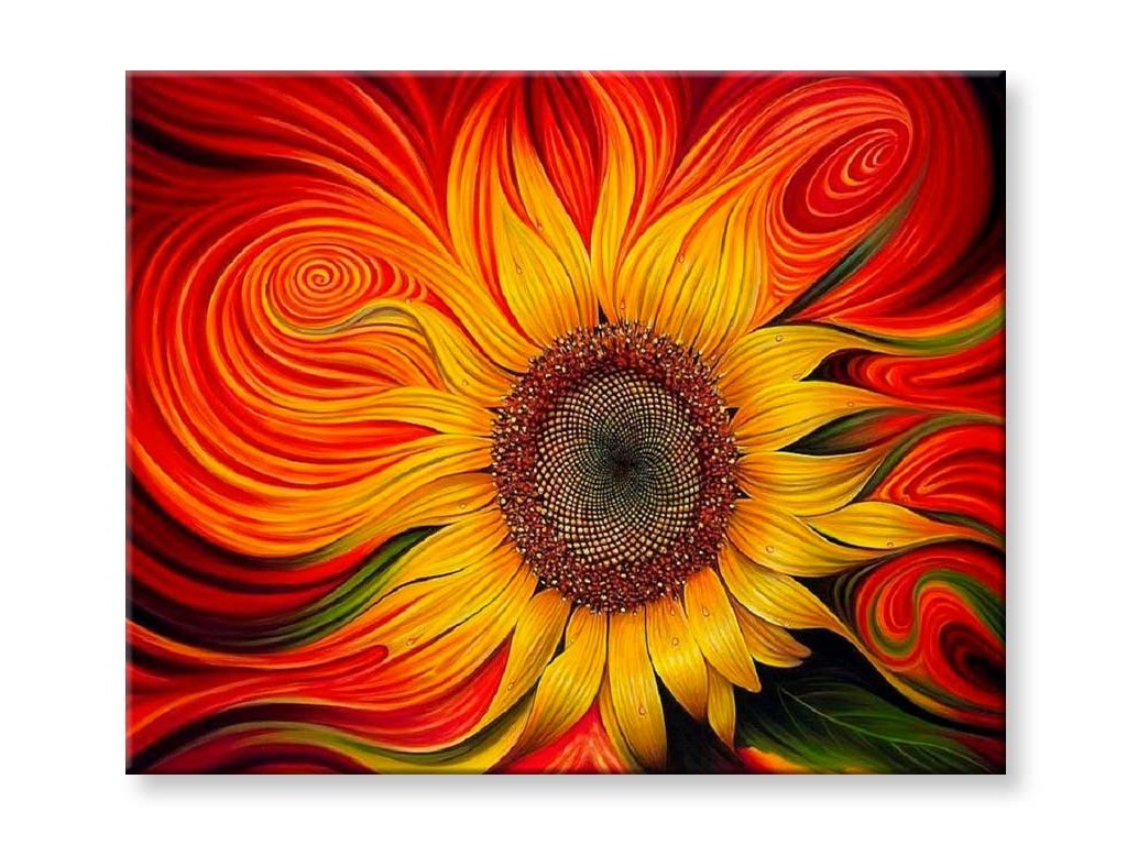 Okvetné lístky krásnej slnečnice sú žlté ako slnko. Ich stredy sú plné chutných semien. Kvet slnečnice sa mení na magické červené špirály, jedinečné symboly nekonečna. Energetická špirála je ochranným symbolom kozmickej transformácie a jej sila pochádza z kolobehu života.
