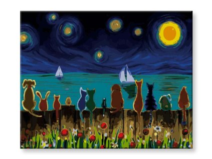 Šteniatka v košíku. Rozpustilí psíkovia objavujú v košíku veľa pokladov. Psie drobotina na drevených doskách malého domčeka víta jar a naplní vás pocitom šťastia a radosti každý deň. Pes je verný priateľ človeka, ktorý zaženie vašu osamelosť aj smútok.